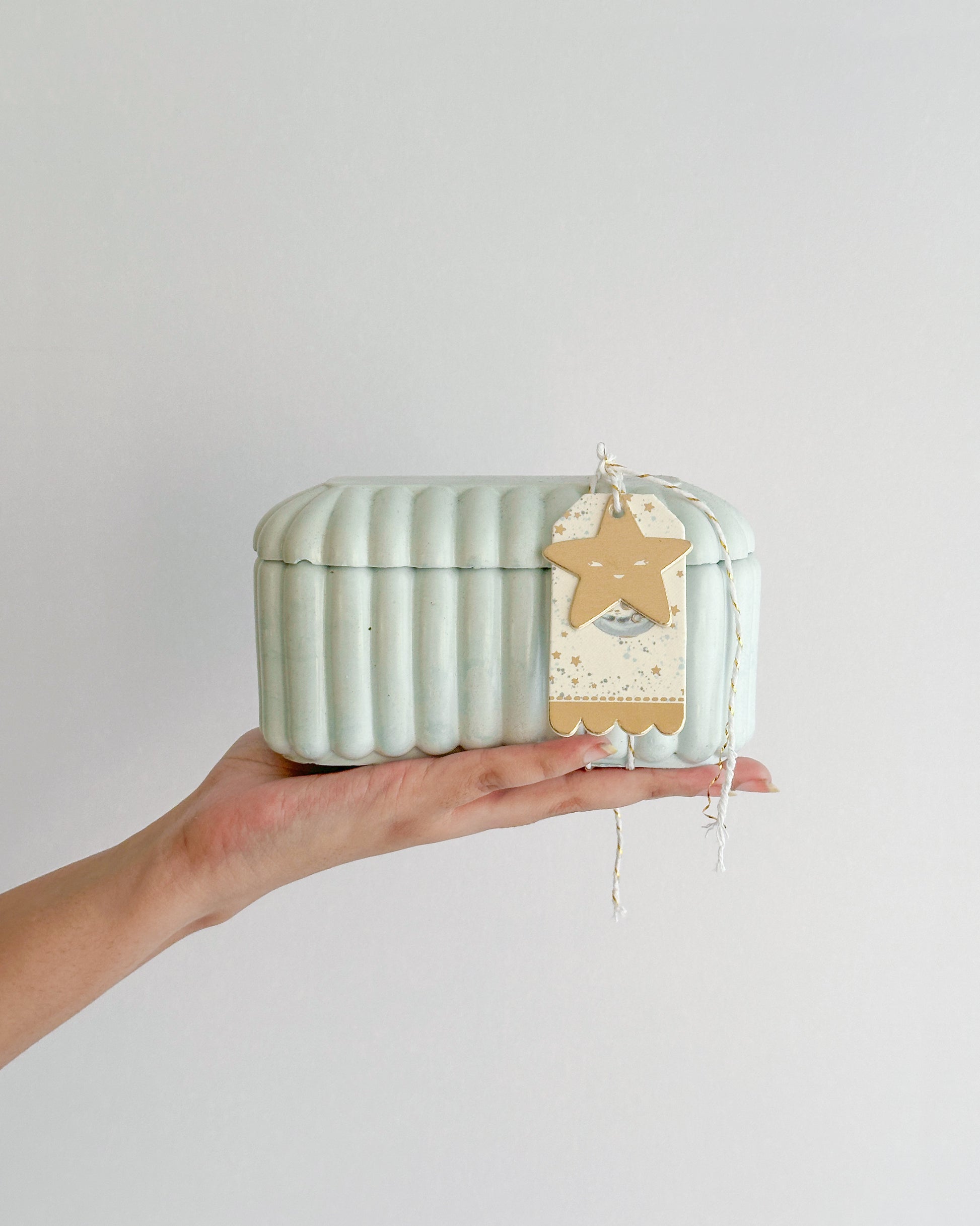 A sculpted keepsake box inspired by drifting clouds and quiet skies. With its gentle ridges and smooth matte finish, the Cloud Puff feels like a small piece of calm , perfect for confectioneries, baby keepsakes, or thoughtful little gifts. Adorned with a star tag and twine, it captures the magic of simplicity wrapped in serenity.
