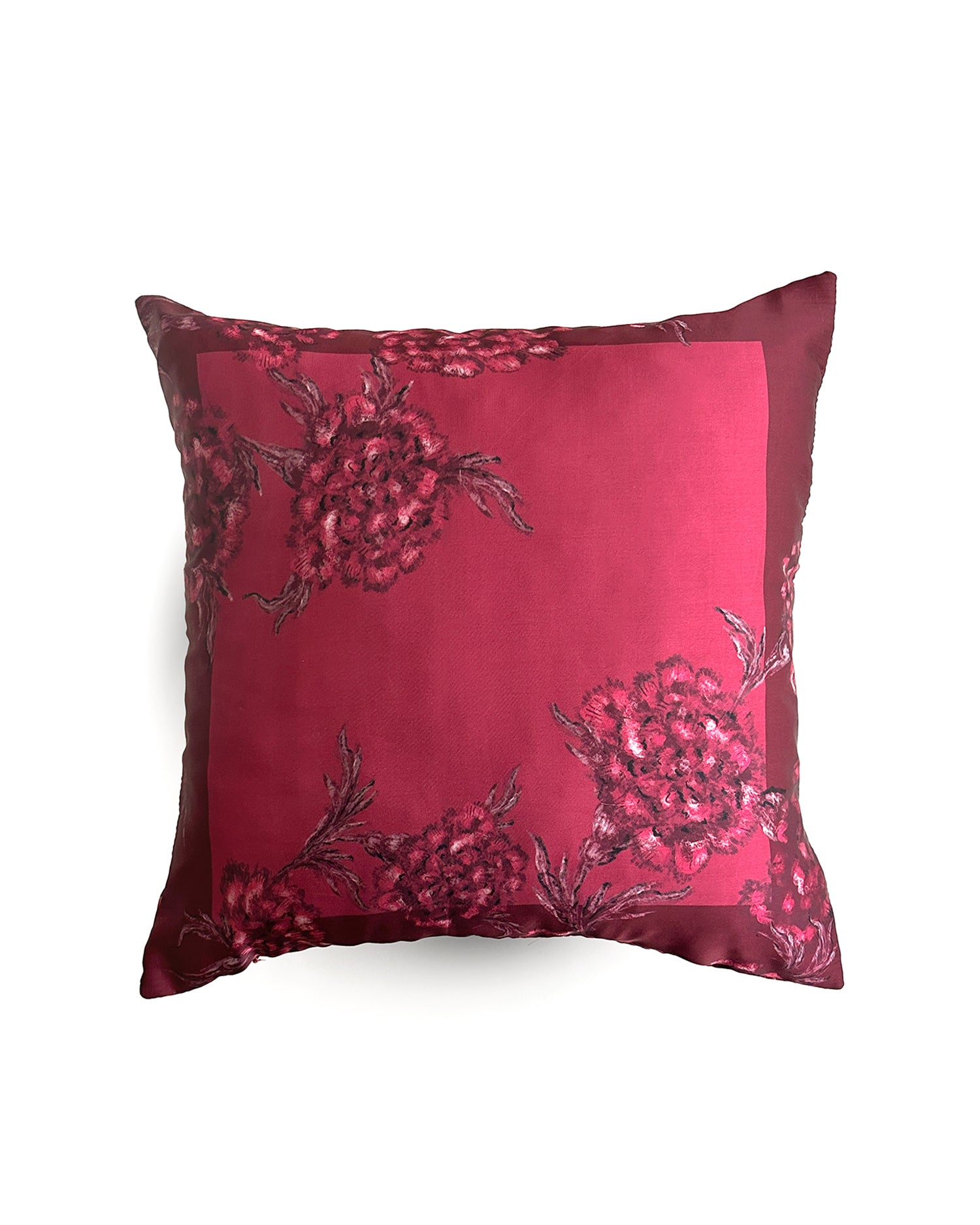 Bursting with bright cerise hand-painted carnations, this printed silk cushion is designed to make a statement. Luxurious in feel and rich in detail, it’s the kind of piece that transforms a room instantly. A flawless choice for Valentine’s gifting, housewarmings, celebrations, or simply to spoil someone special (including yourself).